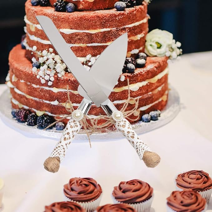 Rustic Wedding Cake Serving Set Wedding Cake Knife and Server Set Pizza Pie Server Set for Anniversaries Birthdays Christmas Parties