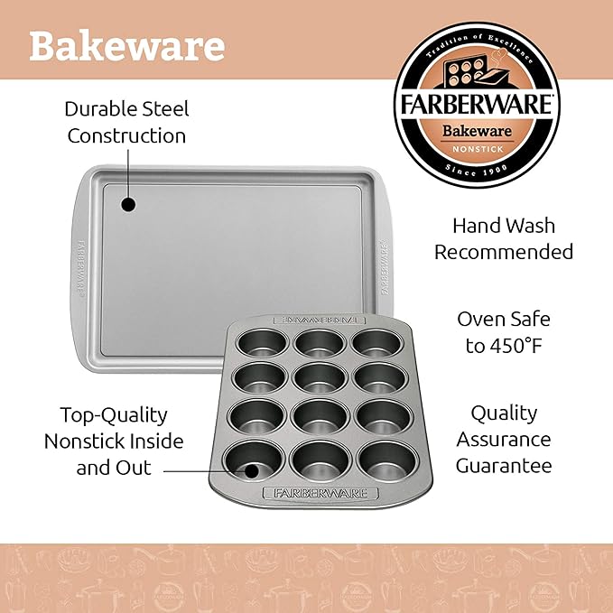 Farberware Nonstick Bakeware Set, Nonstick Cookie Sheets / Baking Sheets - 2 Piece, Gray