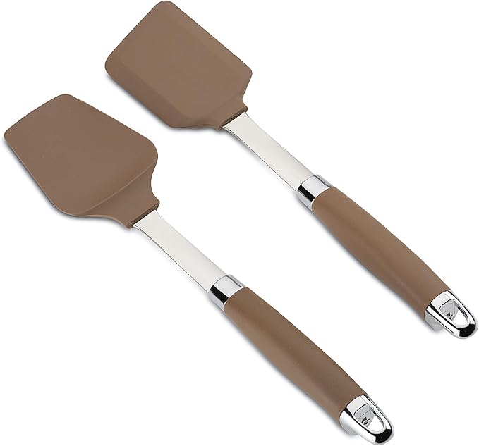 About This SET INCLUDES: Spoonula, Spatula BUILT TO LAST: Heavy-duty spatula and spoonula are made from durable silicone and steel... Read more