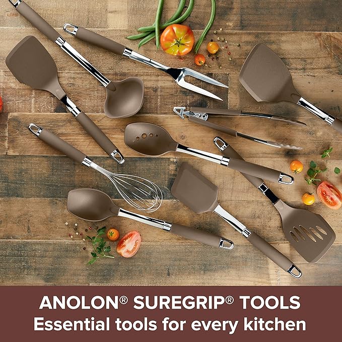 Anolon SureGrip Nonstick Silicone Spatula and Spoonula Set/Cooking Utensils, 2 Piece, Bronze