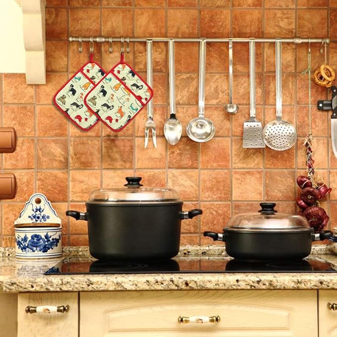 Pot Holders Set of 2 Heat Resistant 480℉ Kitchen 100% Cotton Comfortable Lining Printing Dog Flower Women Men Home Cooking Baking Microwave BBQ Gift(Dog)