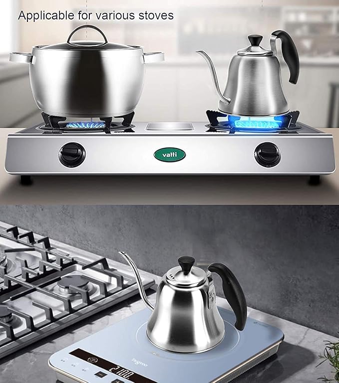 Coffee Kettle for Stove Top Premium Gooseneck Kettle, Pour Over Coffee Tea Pot, Stovetop Teapot, Hot Water Heater for Camping, Home & Kitchen, Stainless Steel - Small 28oz, Brushed