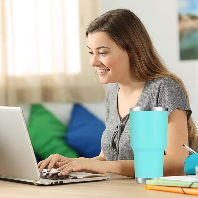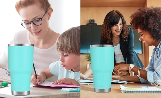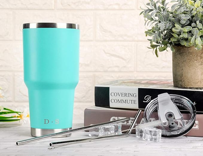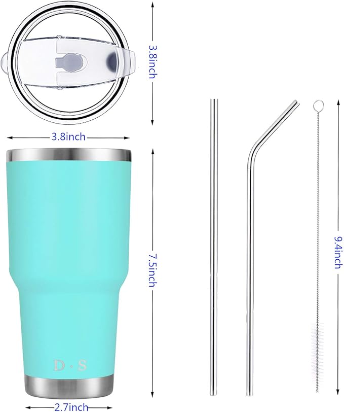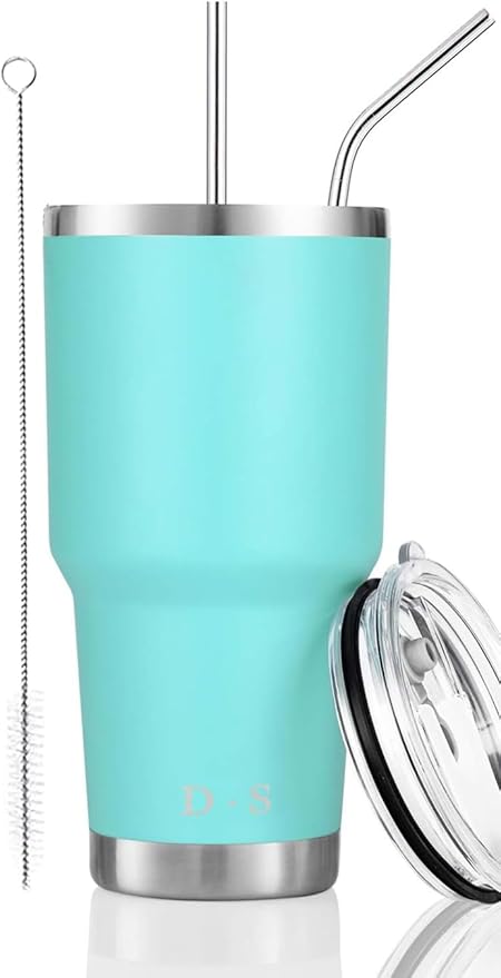 D·S 30oz Mint Tumbler Stainless Steel Double Wall Vacuum Insulated Mug with Straw and Lid, Cleaning Brush for Cold and Hot Beverages