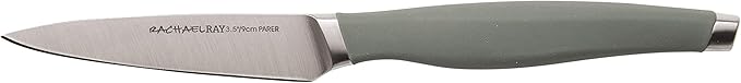 Rachael Ray Cutlery Japanese Stainless Steel Knives Set with Sheaths, 8-Inch Chef Knife, 5-Inch Santoku Knife, and 3.5-Inch Paring Knife, Gray