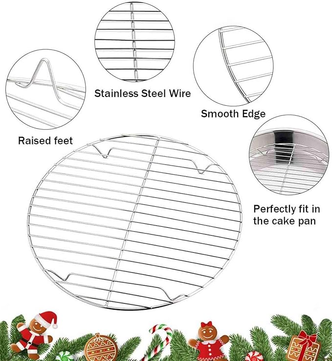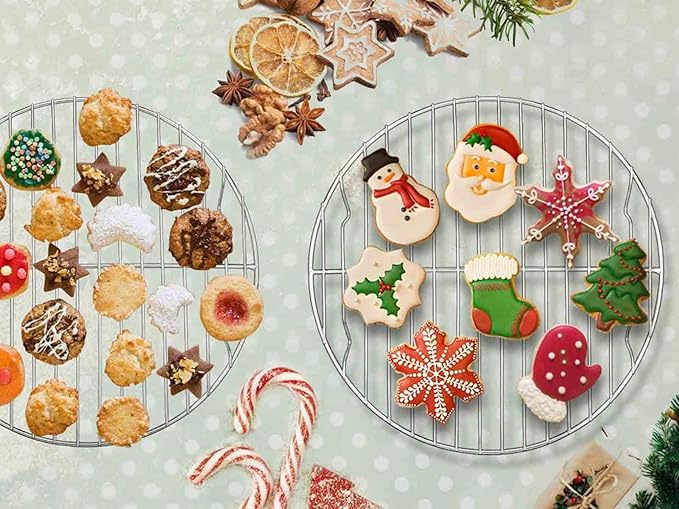 TeamFar Round Cooling Rack Set of 2, 9 Inch Round Baking Steaming Roasting Rack Set Stainless Steel, Healthy & Dishwasher Safe, Mirror Finish & Rust Free