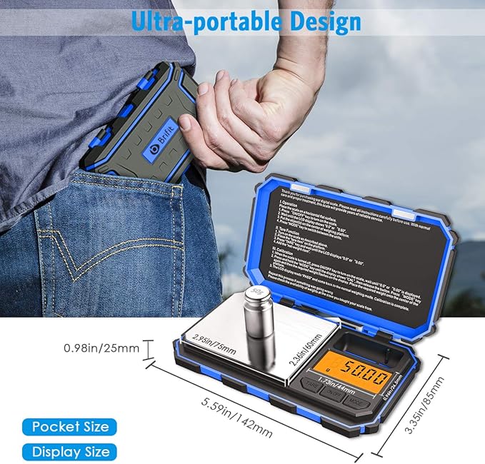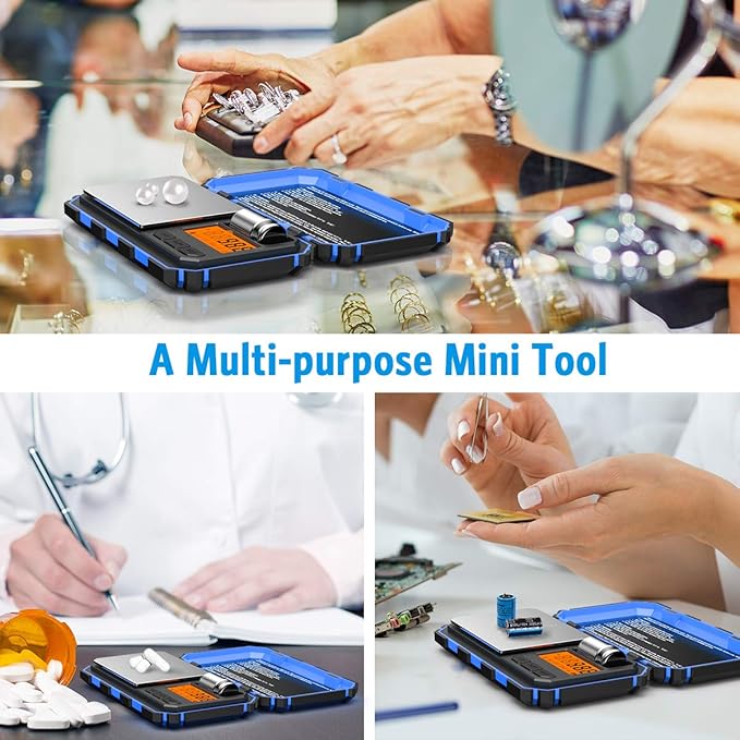 (Upgradaed) Digital Mini Scale, 200g /0.01g Pocket Scale, 50g Calibration Weight, Electronic Smart Scale, 6 Units, LCD Backlit Display, Tare, Auto Off, Stainless Steel (Battery Included)