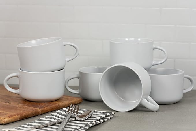10 Strawberry Street Wazee Matte 4.75"/22 oz Oversized Mug, Set of 6, White