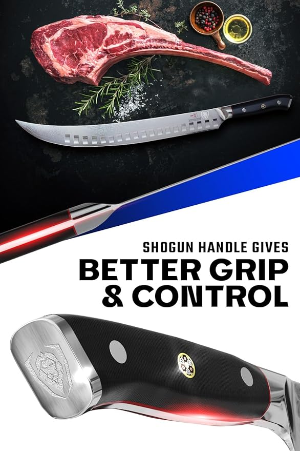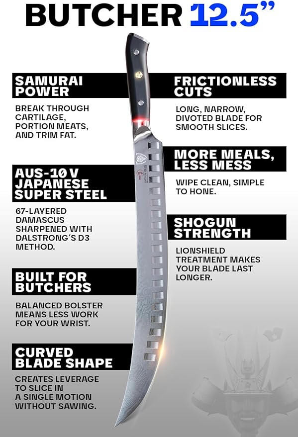 DALSTRONG Butcher Knife - 12.5 inch Slicer - Shogun Series ELITE - Japanese AUS-10V Super Steel - Black G10 Handle - Vacuum Treated Cimitar Meat Breaking Knife Gift - Sheath Included