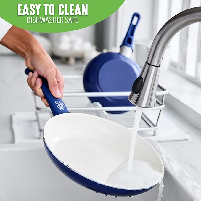 GreenLife Non Stick Fry Pan Set (7" & 10"), Non-Toxic PFAS-Free Ceramic Skillets, Dishwasher & Oven Safe, Egg Omelet Frying Pans, Stay- Cool Handles, Kitchen Home Cooking Essentials, Blue