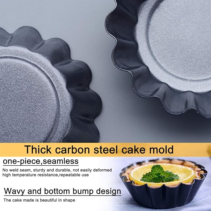 12 Packs Egg Tart Mold, Upgrade Bigger Size 3 x 0.9inch, Cupcake Cake Muffin Mold Tin Pan Baking Tool, Carbon Steel