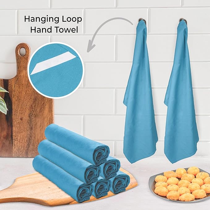Urban Villa Kitchen Towels Premium Quality 100% Cotton Solid Kitchen Towels Set of 6 Ultra Soft Size 20X30 Inches Teal Color Kitchen Towel Highly Absorbent KitchenTowels