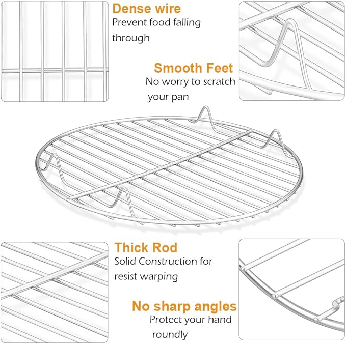 P&P CHEF Round Cooking Rack, 3 Pcs Stainless Steel Baking Cooling Steaming Grilling Rack, Fits Air Fryer/Stockpot/Pressure Cooker/Round Cake Pan, Oven & Dishwasher Safe (7.5 + 9 + 10.5 Inch)