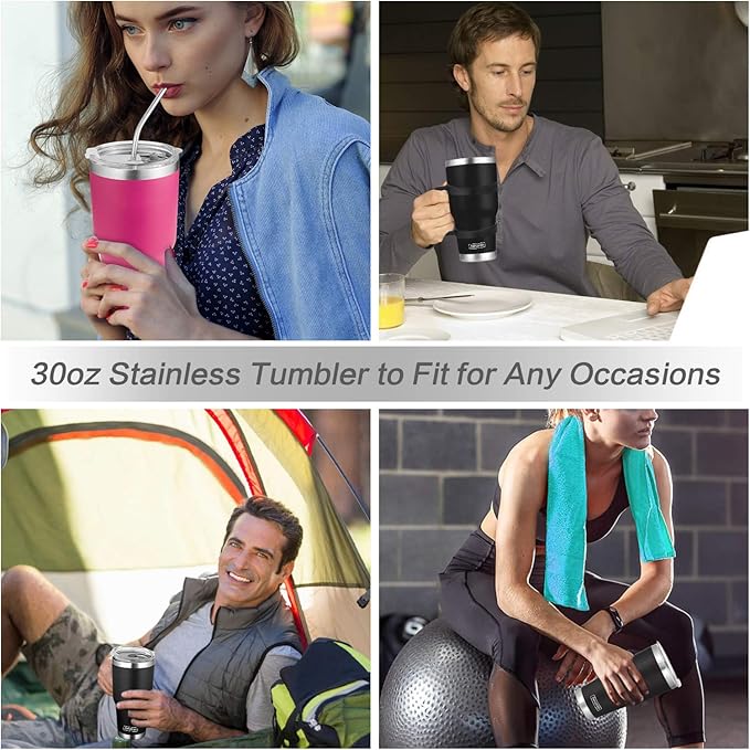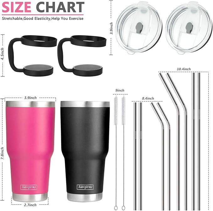 30oz Tumbler, 2 Packs Stainless Steel Double Wall Vacuum Insulated Tumbler Travel Mug With 8Pcs Reusable Straw, 2Pcs Slider Lid, Cleaning Brush, 2Pcs Handles (Black + Purple)