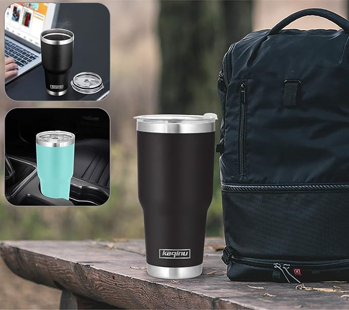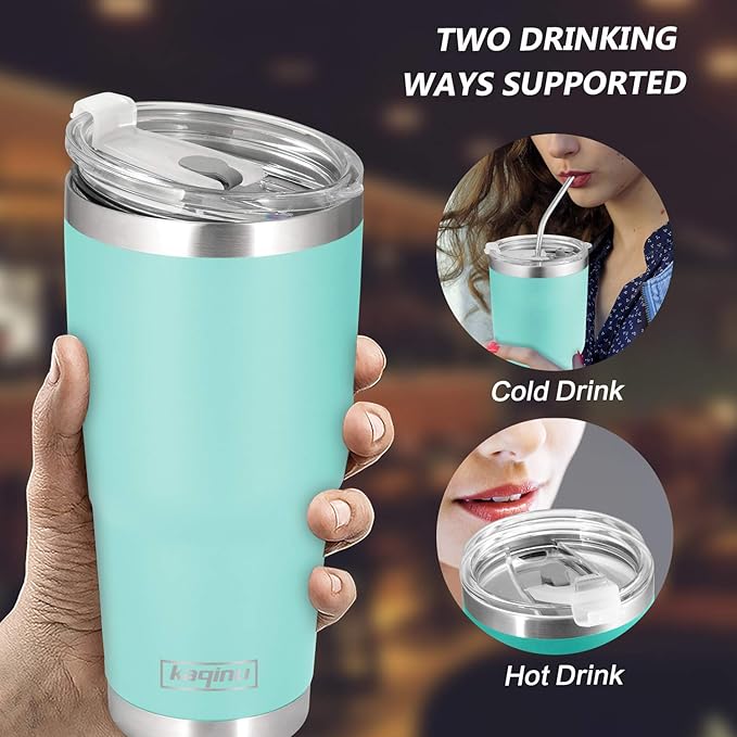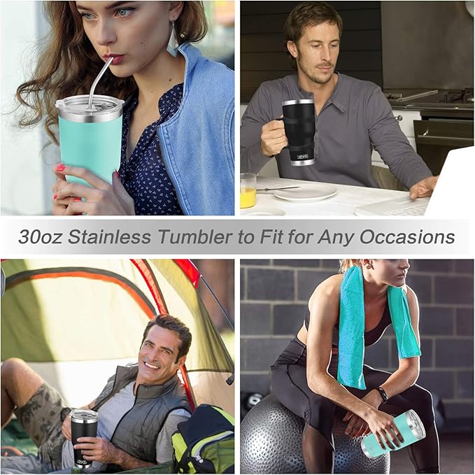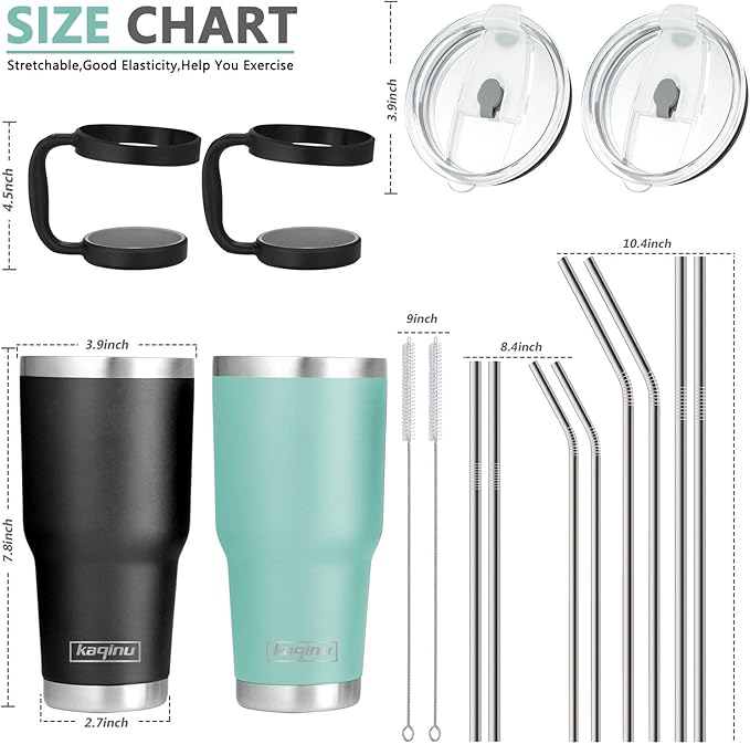 30oz Tumbler, 2 Packs Stainless Steel Double Wall Vacuum Insulated Tumbler Travel Mug With 8Pcs Reusable Straw, 2Pcs Slider Lid, Cleaning Brush, 2Pcs Handles (Black + Teal)