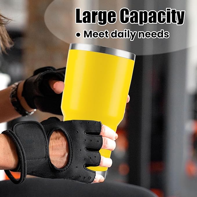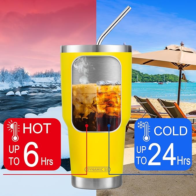 D·S 30oz Yellow Tumbler Stainless Steel Insulated Travel Mug with Straw Lid Cleaning Brush (30oz Yellow)