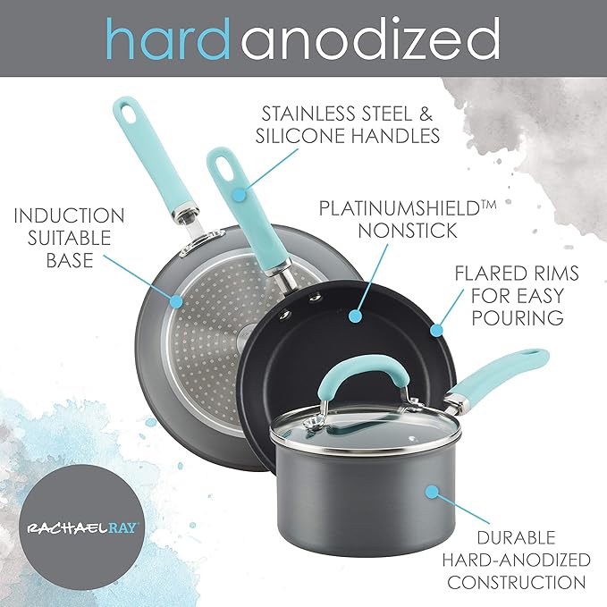 Rachael Ray Create Delicious Deep Hard Anodized Nonstick Frying Pan / Fry Pan / Hard Anodized Skillet - 12.5 Inch, Gray