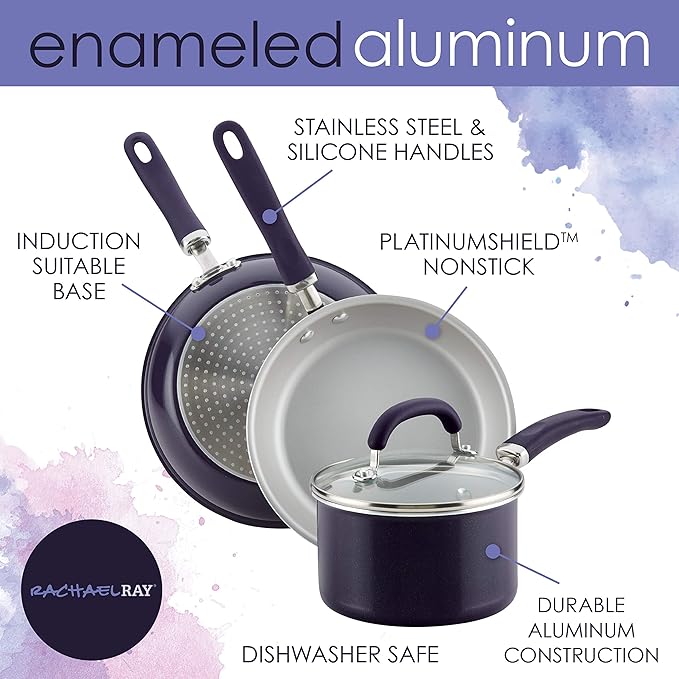 Rachael Ray Create Delicious Nonstick Cookware Pots and Pans Set, 13 Piece, Purple Shimmer