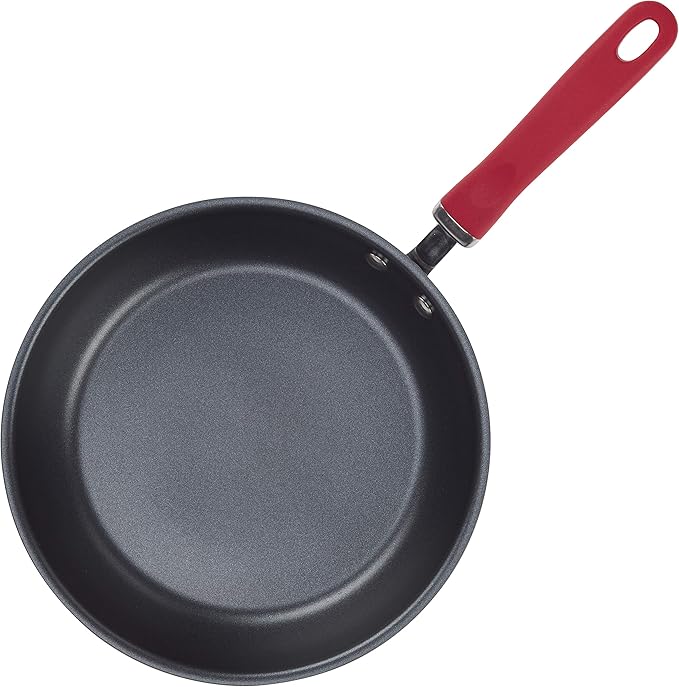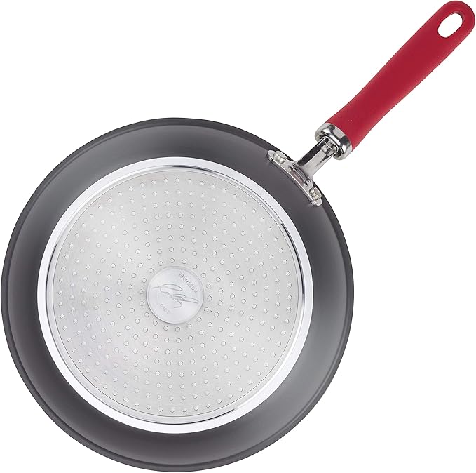 • SUPERIOR HANDLING: Frying pan features double-riveted, stainless steel and silicone grippy handle; flared rim for easy pouring