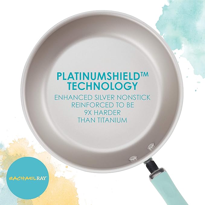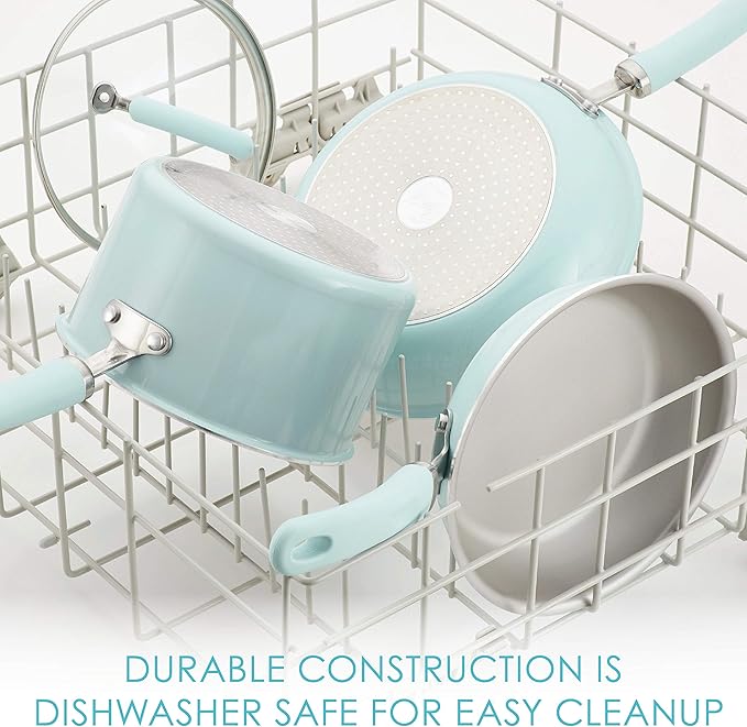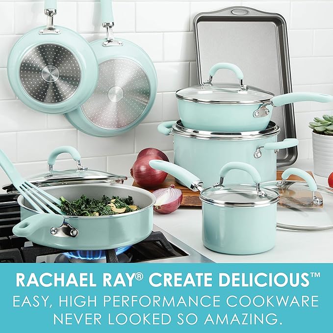 Rachael Ray Create Delicious Nonstick Cookware Pots and Pans Set, 13 Piece, Light Blue Shimmer
