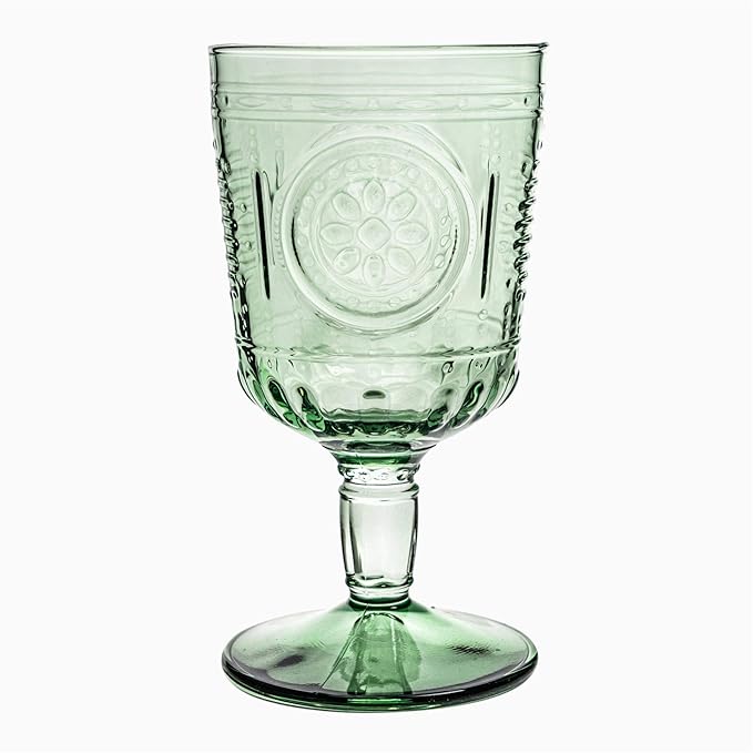 Bormioli Rocco Romantic Set Of 4 Stemware Glasses, 10.75 Oz. Colored Crystal Glass, Pastel Green, Made In Italy.