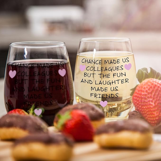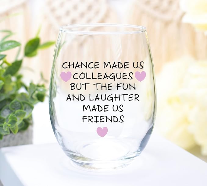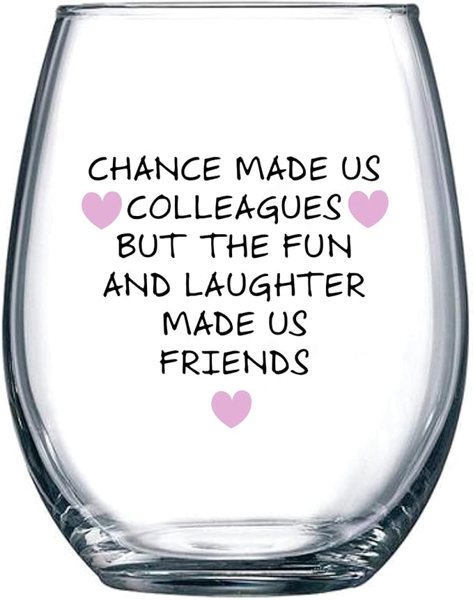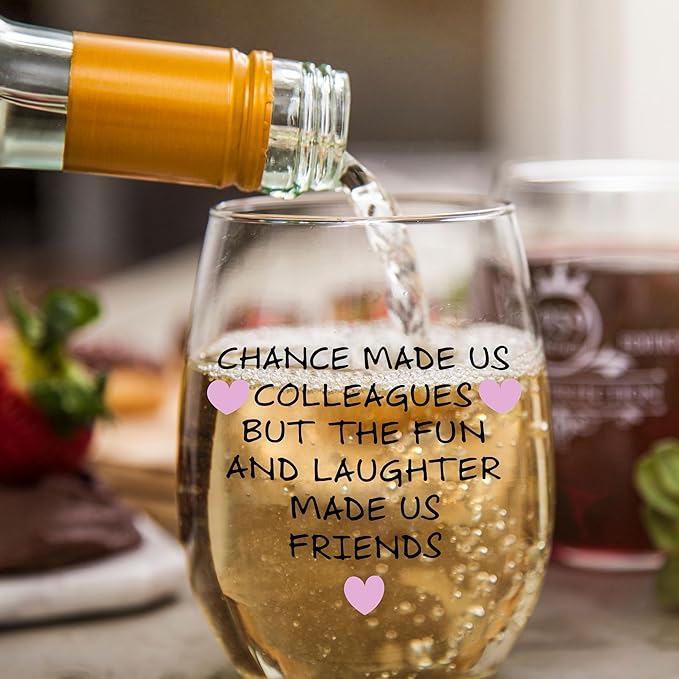 Gelid Chance Made Us Colleagues - Best Coworker BFF Gift - Perfect For Work Bestie Friend - Leaving or Going Away Present for Men and Women - 15 oz Stemless Wine Glass