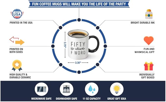 Gelid Fifty The Ultimate F Word - 50th Birthday Gifts for Women and Men - Funny Bday Gift Idea for Mom Dad Husband Wife - 50 Year Old Funny 11 oz Tea Cup Coffee Mug