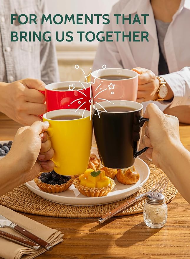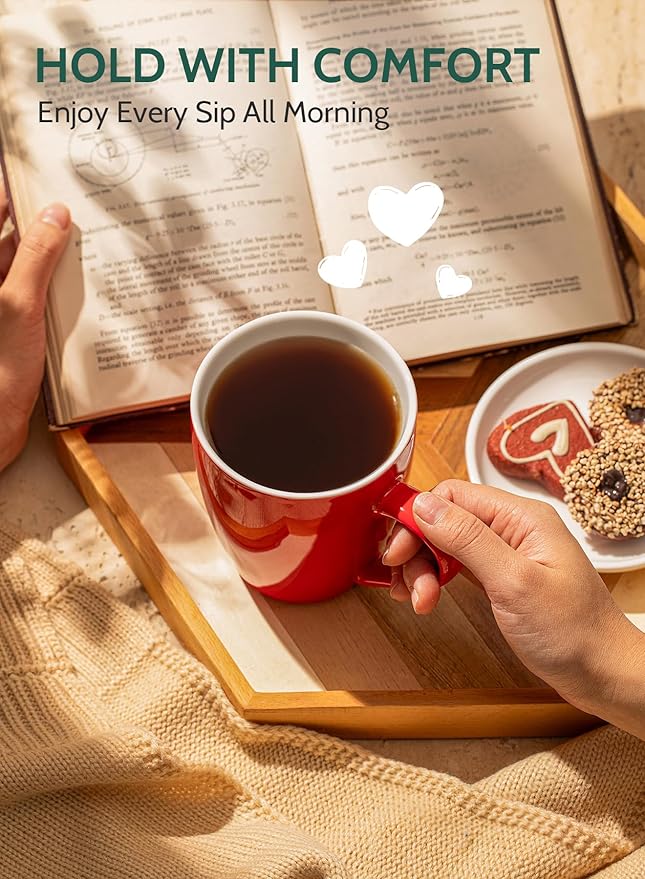 Sweese Porcelain Coffee Mugs - 16 Ounce (Top to the Rim) for Coffee, Latte, Tea, Cocoa, Set of 4, Red