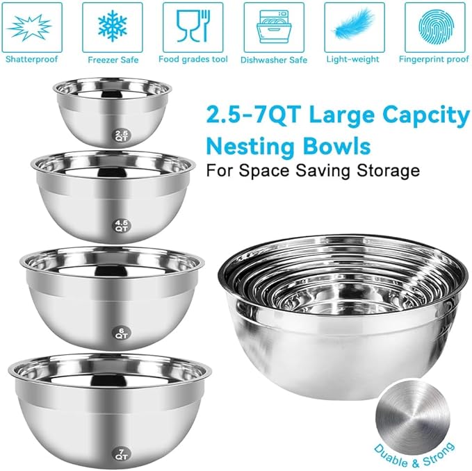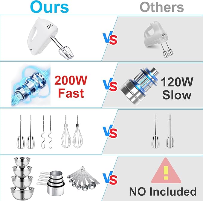 Hand Mixer Electric Mixing Bowls Set, 5 Speeds Handheld Mixer with 4 Nesting Stainless Steel Mixing Bowl, Measuring Cups Spoons 200W Kitchen Blender Whisk Beater Baking Supplies For Beginner