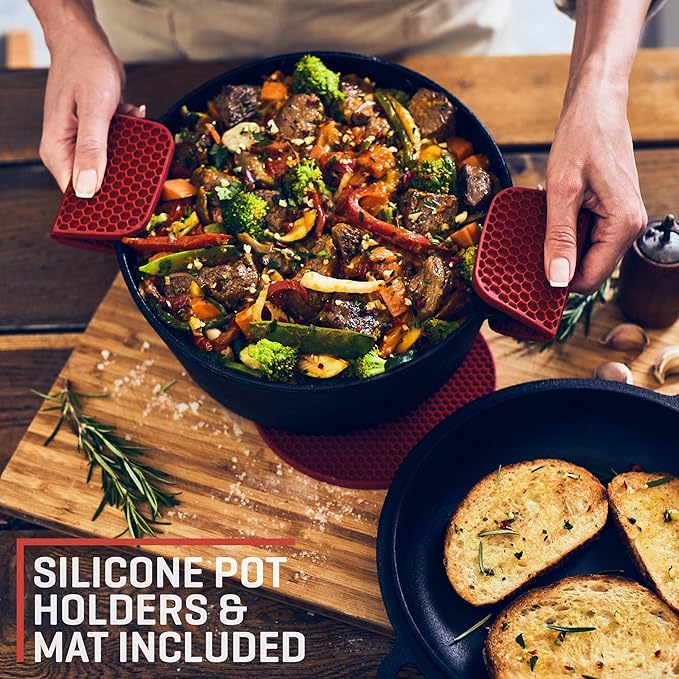 About This 2-IN-1 LID - Save kitchen space with this versatile double Dutch oven cast iron lid, as it converts... Read more