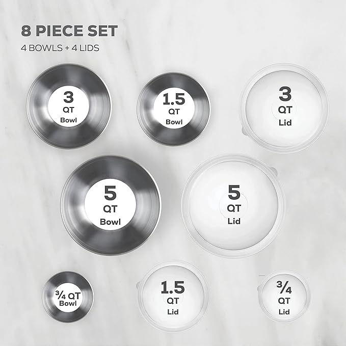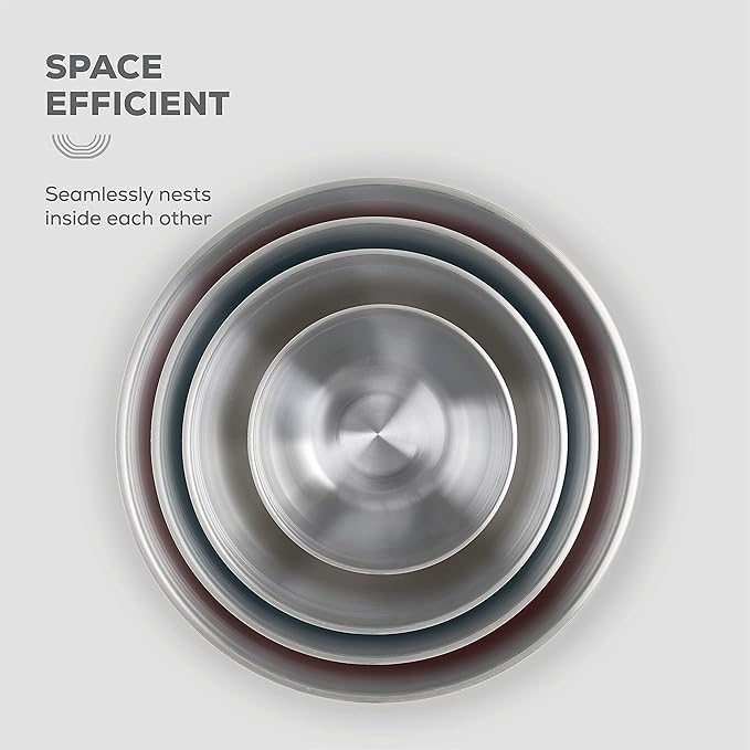 Double Wall Stainless Steel Mixing Bowls with Airtight Lids (Set of 4) Nesting Bowls for Space Saving Storage - Non-Slip Bottoms for Stability - Mixing Bowl Set For Cooking, Baking & Food Storage.