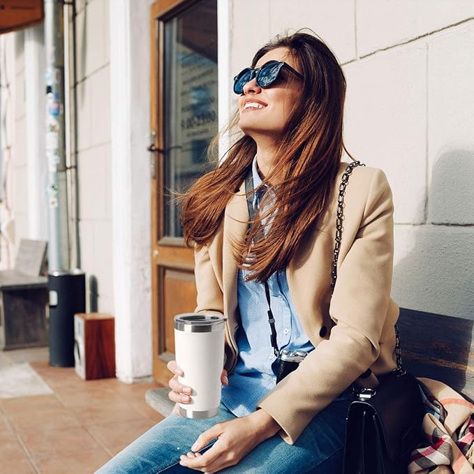 HASLE OUTFITTERS 20oz Tumblers Bulk Stainless Steel Cup with Lid Double Wall Vacuum Insulated Coffee Mug for Cold & Hot Drinks 8 Pack, White