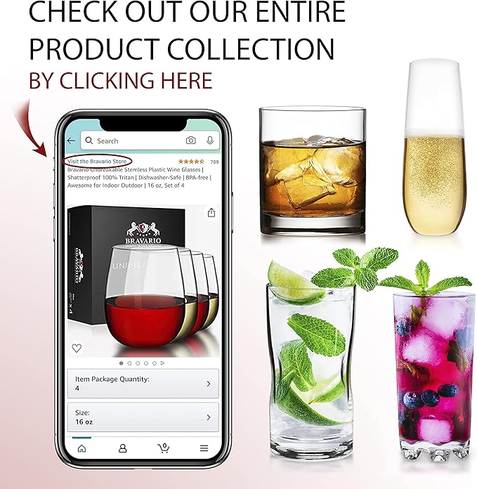 About This Unbreakable & Indestructible: Crafted from heavy-weight 3.77oz Tritan Plastic, Bravario shatterproof glasses are built to last, and won’t... Read more