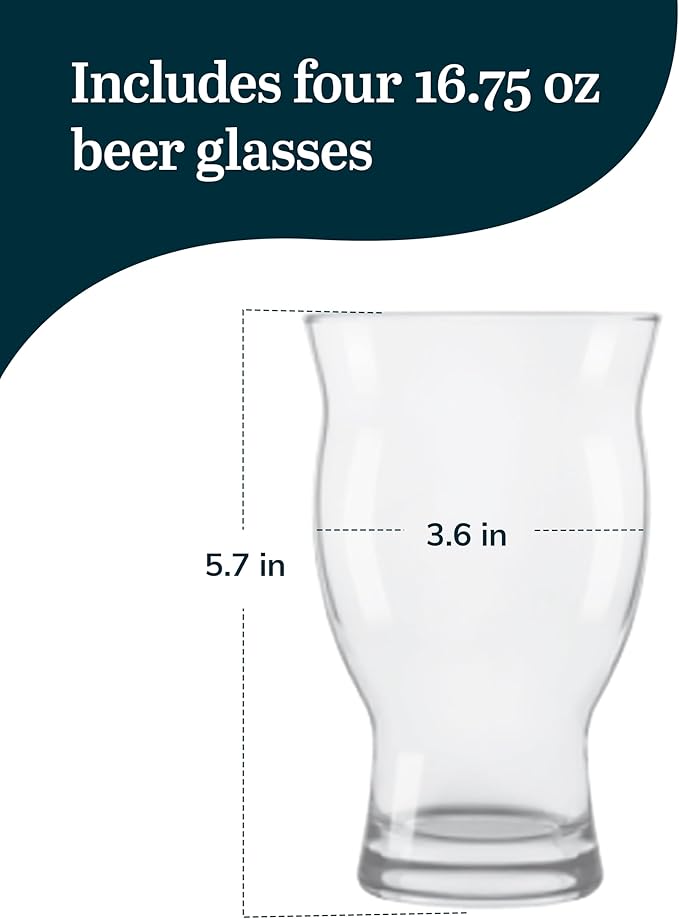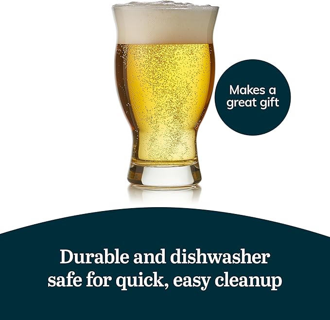 Libbey Craft Brews Nucleated Pint Beer Glasses, Dishwasher Safe Pint Glasses Set of 4 for Light Beers, Stouts, Laser Etching Nucleated Beer Glasses