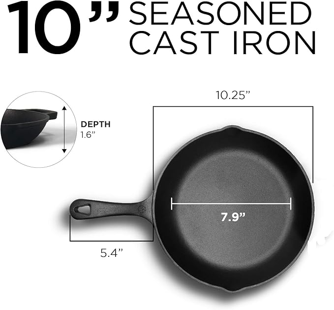 Commercial CHEF 10 Inch Cast Iron Skillet, Pre-Seasoned Cast Iron Pan with Dual Pour Spouts