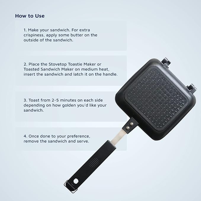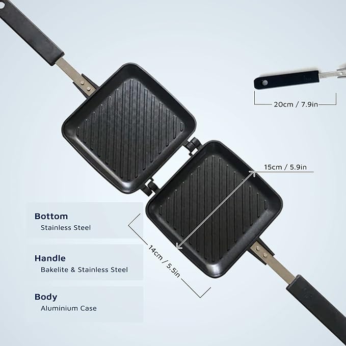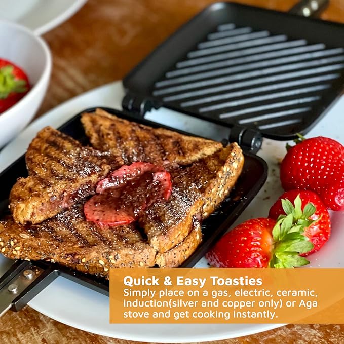 Jean-Patrique Stovetop Panini Grill Press Sandwich Maker, Black ā Ceramic Nonstick Grilled Cheese Maker with Handles - Indoor & Outdoor Double-sided Sandwich Toaster