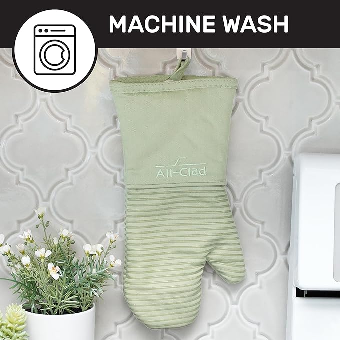 All-Clad Silicone Oven Mitts: Heat Resistant up to 500 Degrees - 100% Cotton & Silicone, 14"x7" Oven Mitt for Kitchen and Barbeque, 2-Pack, Fennel