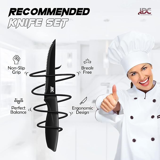 About This SERRATED SHARP BLADES - Meticulously crafted from top-tier stainless steel steak knives, our kitchen knife set has rust-resistant,... Read more