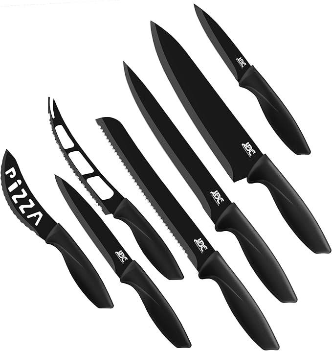 LDC Kitchen Black Knife Set - Stainless Steel, Dishwasher Safe Ergonomic Knives Set with Anti-Slip Handles - Ultra-Sharp Blades - Kitchen Essential Knives - 7 Piece Set