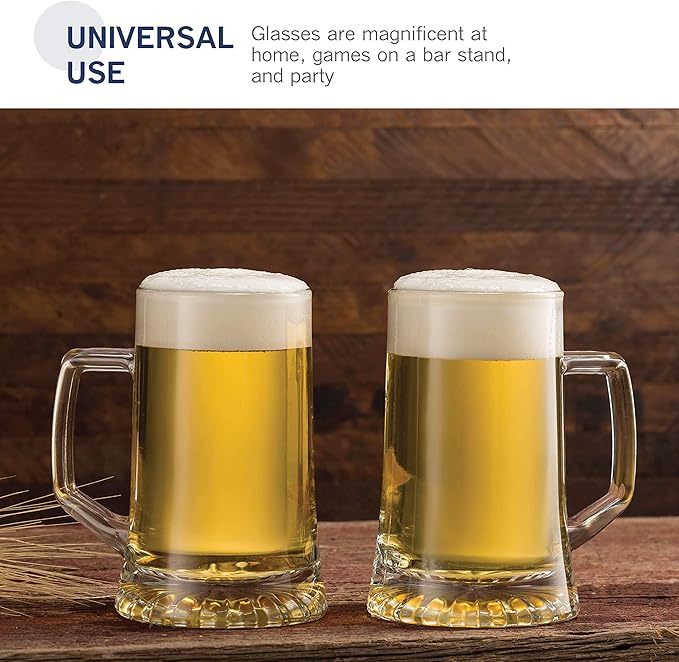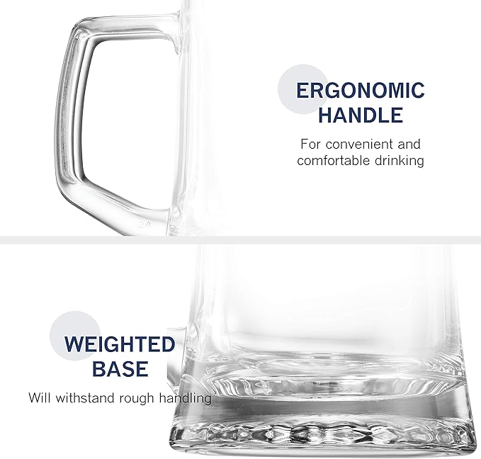 Bormioli Rocco 4-Pack Solid Heavy Large Beer Glasses with Handle - 17.1/4 Ounce Glass Steins, Traditional Beer Mug glasses Set, Perfect Coffee - Tea Glass, Everyday Drinking Glasses, Cocktail Glasses
