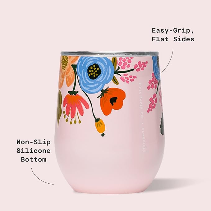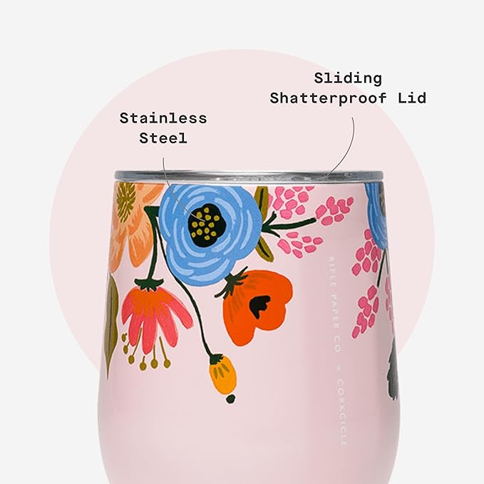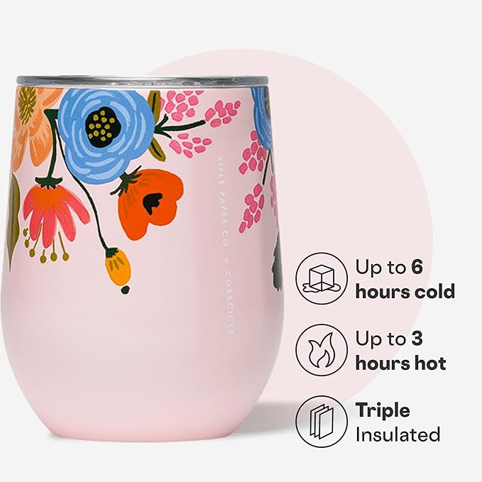Corkcicle Stemless Insulated Wine Glass Tumbler - Keeps Beverages Cold 6 Hrs Hot 3 Hrs - Stainless Steel - Easy-Grip - Gift for Mom - Great for Mother's Day or Christmas - 12 oz - Blush Lively Floral