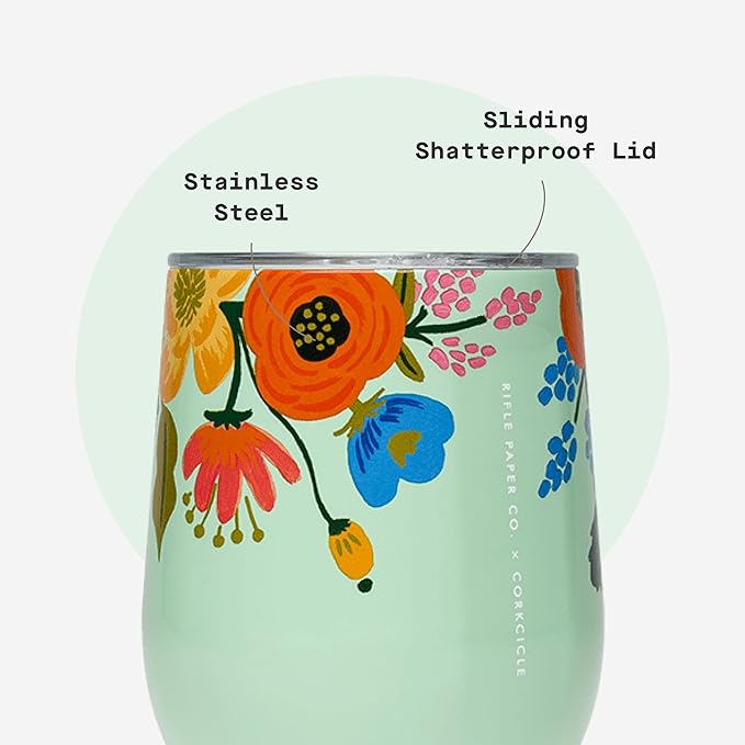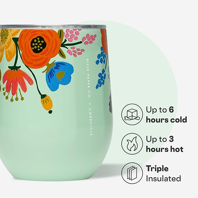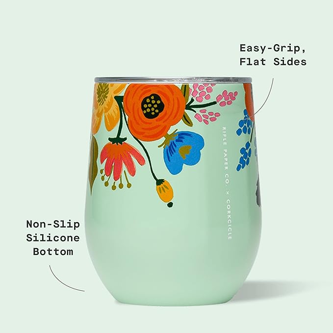 Corkcicle Stemless Insulated Wine Glass Tumbler - Keeps Beverages Cold 6 Hrs Hot 3 Hrs - Stainless Steel - Easy-Grip - Gift for Mom - Great for Mother's Day or Christmas - 12 oz - Mint Lively Floral