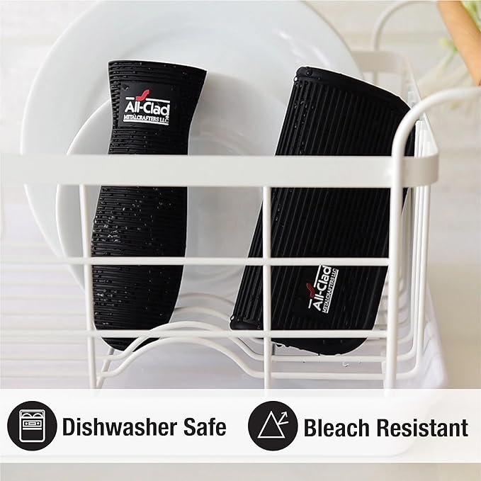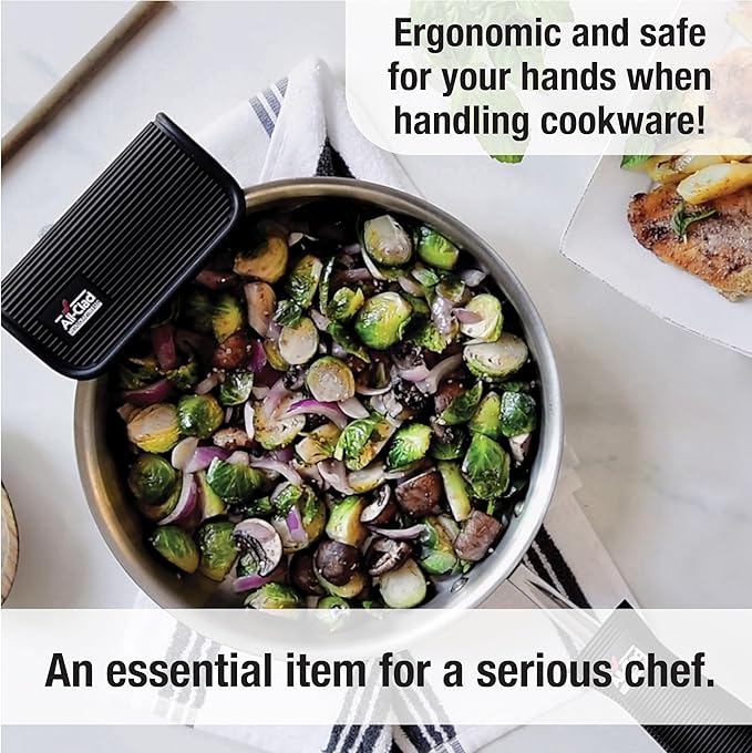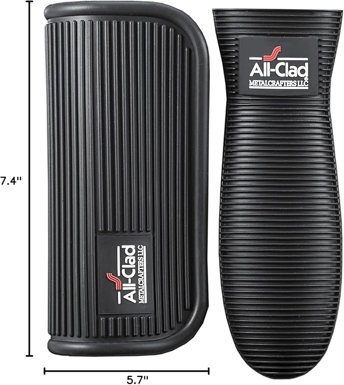 All-Clad Silicone Grip Set: 100% Silicone Flexible & Heat Resistant Ribbed Grip Set - Perfect for Cast Iron, Steel, or Glass, (2-Piece), Black/Grey