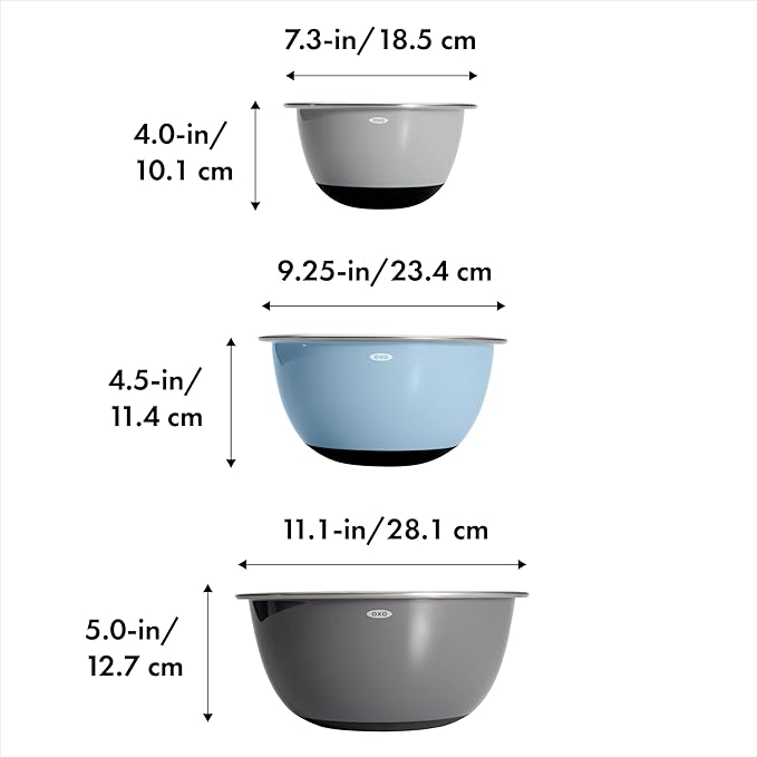 OXO Good Grips 3-Piece Stainless Steel Mixing Bowl Set - Blue/Gray