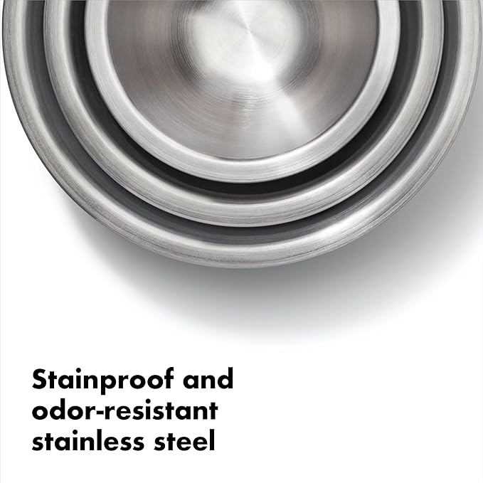 About This Set includes one 1. 5-Quart, one 3-quart and one 5-quart stainless steel mixing bowls Stainless steel interiors won't... Read more