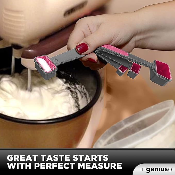 Collapsible Measuring Cups and Nesting Spoons - Adjustable Silicone for Cooking, used for Liquid and Dry Kitchen Items - Portable Portion Control, Dog Food, Kids, Travel, Camper, Space-Saving - 2 Sets