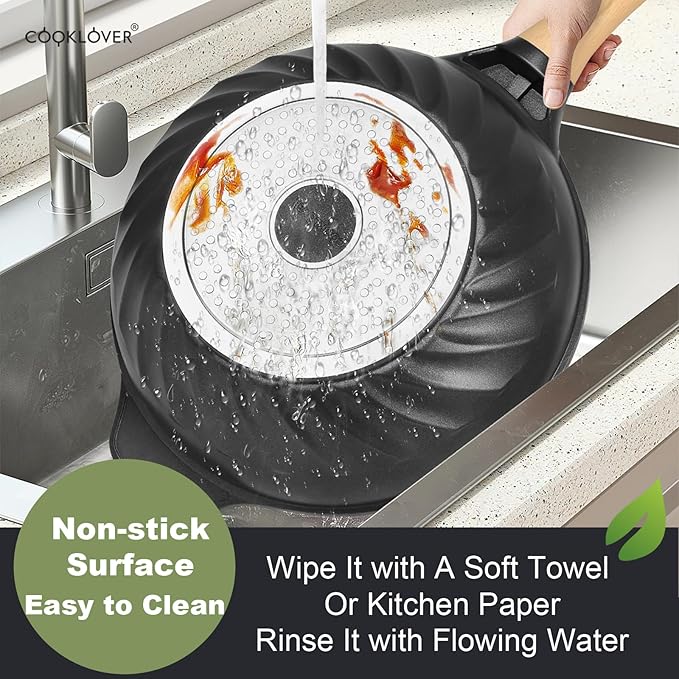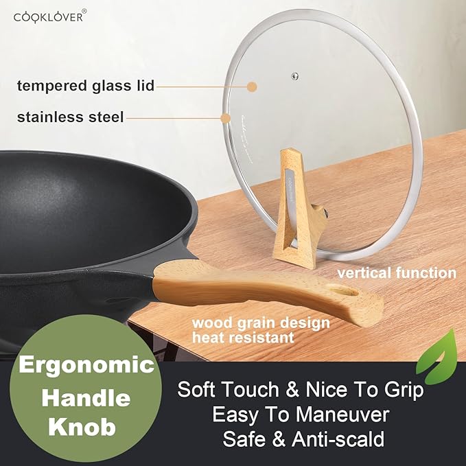 COOKLOVER Nonstick Woks And Stir Fry Pans Die-cast Aluminum Scratch Resistant 100% PFOA Free Induction Wok pan with Lid 12.6 Inch - BK