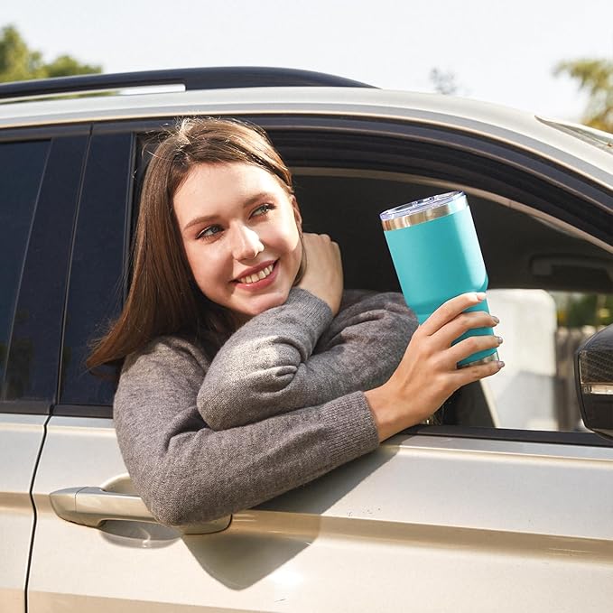 MEWAY 30oz Tumbler Double Wall Vacuum Insulated Travel Mug, Stainless Steel Tumbler with Lid, Durable Powder Coated Insulated Coffee Cup for Cold & Hot Drinks (Lake Blue,1 PACK)