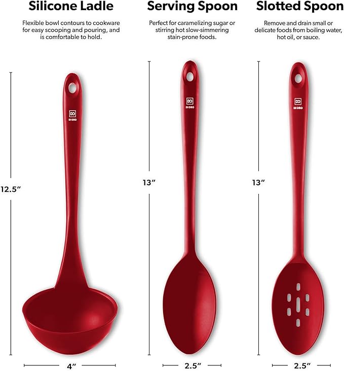 DI ORO Seamless Series 3-Piece Spoon/Ladle Set (RED)