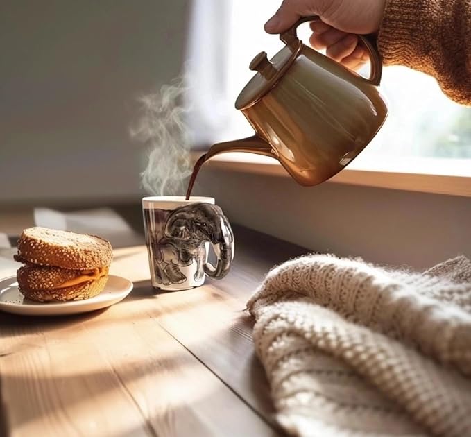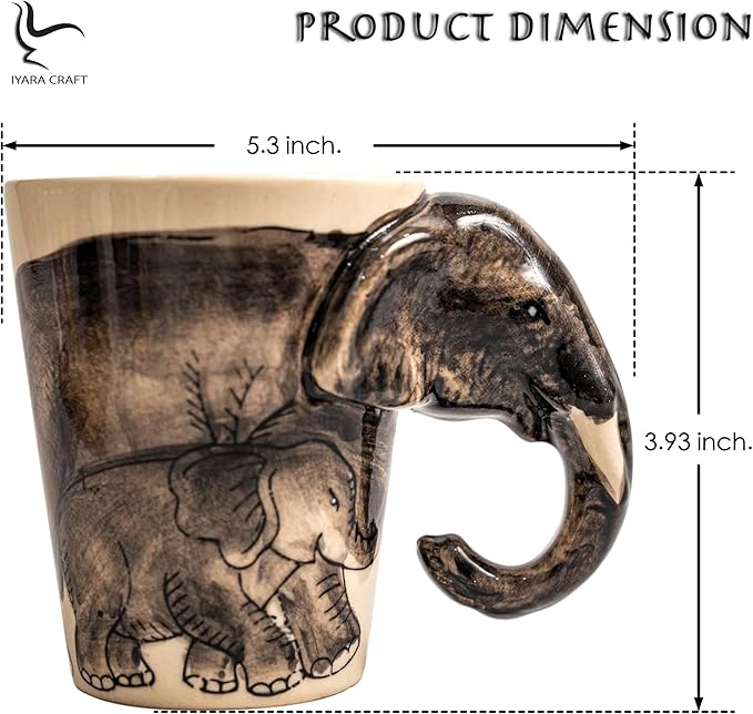 IYARA CRAFT 3D Elephant Mug 11oz – Handcrafted Ceramic Coffee Cup with Sculpted Elephant Handle, Microwave & Dishwasher Safe, Unique Wildlife Gift for Animal Lovers, Women, Christmas & Holiday Gifts