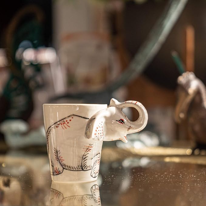 IYARA CRAFT 3D Elephant Coffee Mug 11oz - Handle is Sculpted Trunk, Cute Wildlife Design, Quality Ceramic, Microwave & Dishwasher Safe, Ideal for Tea & Hot Chocolate, 4.5" x 5"… (White trunk)